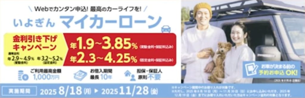四国・中国エリアを中心に展開する地方銀行で、全国対応ではありませんが、2025年11月28日まで「金利引き下げキャンペーン」を実施中です。もし対象となるなら、この優遇金利はぜひ活用したいところです。