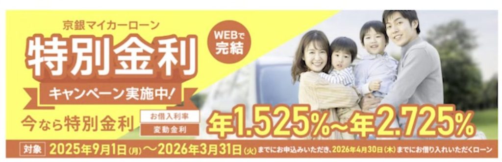 営業エリアは京都府内です。2026年3月末まで特別金利キャンペーンを実施しており、比較的長期間、キャンペーン金利が利用できる点が特徴です。購入時期を調整できる方は、キャンペーンを活用することでより有利な条件で契約できる可能性があります。